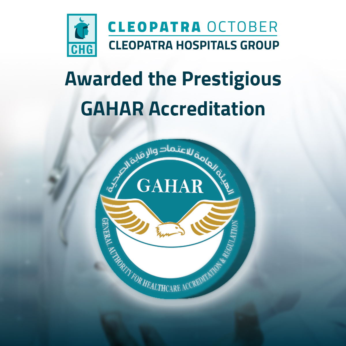 We are proud to announce that Cleopatra October Hospital has been awarded the prestigious GAHAR Accreditation (General Authority for Healthcare Accreditation and Regulation). This recognition reflects our unwavering commitment to excellence and the consistent delivery of high-quality medical care to our patients.
